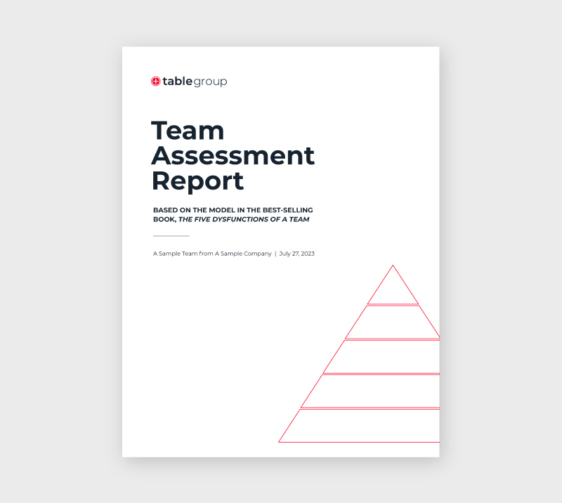 • A customized report that summarizes the Five Dysfunctions of a Team model and assesses the team’s performance in each behavior